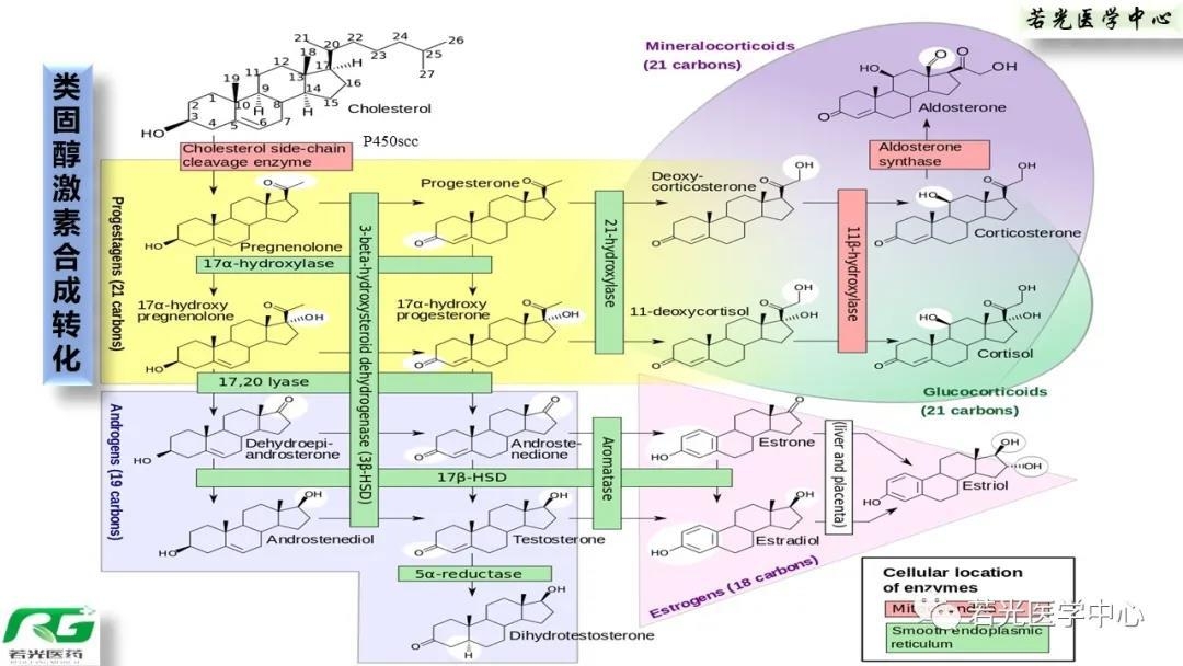 高雄的来源,必须清晰,肾上腺高雄必须鉴别。而PCOS高雄是来源于性腺的高雄。而性腺的高雄仍然与遗传学因素高度交织,涉及性腺发育,类固醇转化及效应(受体)变异。