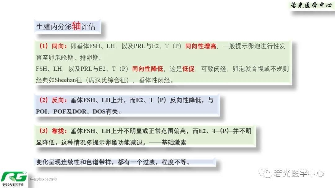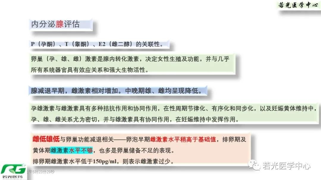 因此,对于高雄观点,我们更加推荐:雌低,雄高雌低,雌低等轴激素(FSH,LH,PRL),腺激素(P,T四项,E1,E2)等联合分析。