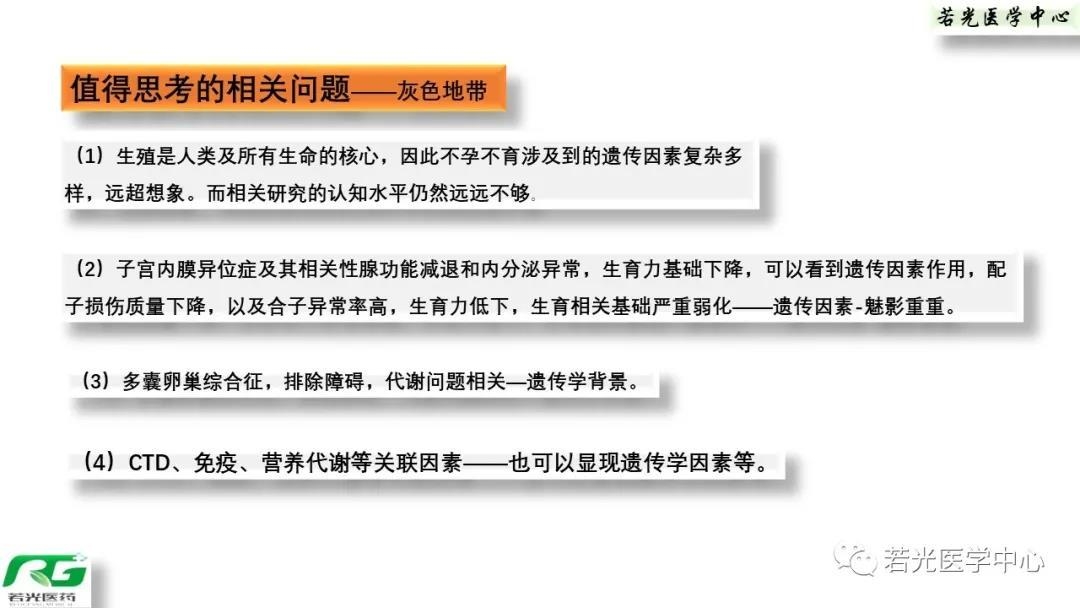 遗传学因素相关的无排卵或排卵障碍,糖脂代谢紊乱及进展带来的排卵障碍等,需要更深一步的全方位病理生理学分析和关注。而不是简单的激素人工周期持续,或不可治愈论。