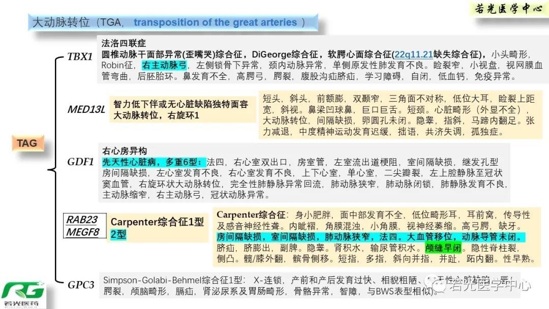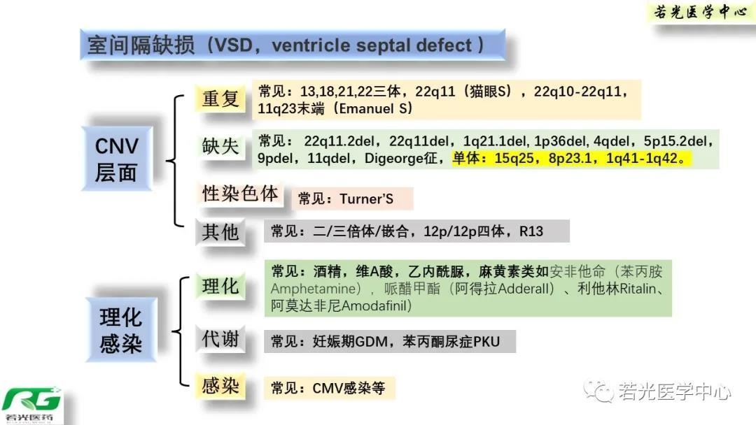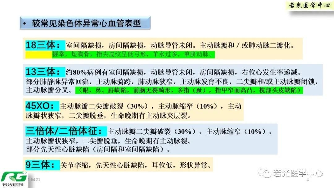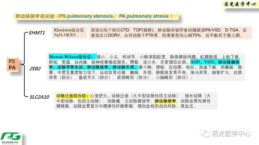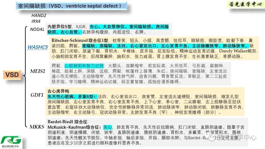 先天性心脏病基因型-表型关联具有规律性和特征性,房间隔缺损、室间隔缺损,房室间隔缺损,三尖瓣下移Ebstein征,左心发育不良,肺动脉狭窄或闭锁,主动脉弓狭窄或闭锁,主动脉瓣狭窄或瓣膜病或主动脉瘤或夹层,大动脉转归,法乐氏四联征,右室双出口,永存动脉干,异构综合征,心脏肿瘤等,致病原因包括染色体异常如8,13,18,21,22三体,CNV层面如缺失如22q11.2缺失等,理化药物因素如TORCHS感染,沙利度胺等影响E3泛素联接酶相关转录因子和炎症因子表达等。单基因层面涉胶原基因,转录因子,结缔组织等发育相关等多层次多方面。详细进行归纳分析,基于表型树-疾病谱-基因网络进行分析时,可理清其规律性。
