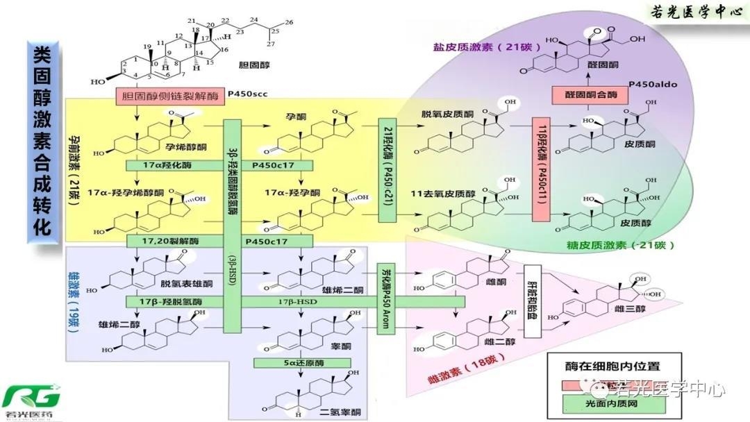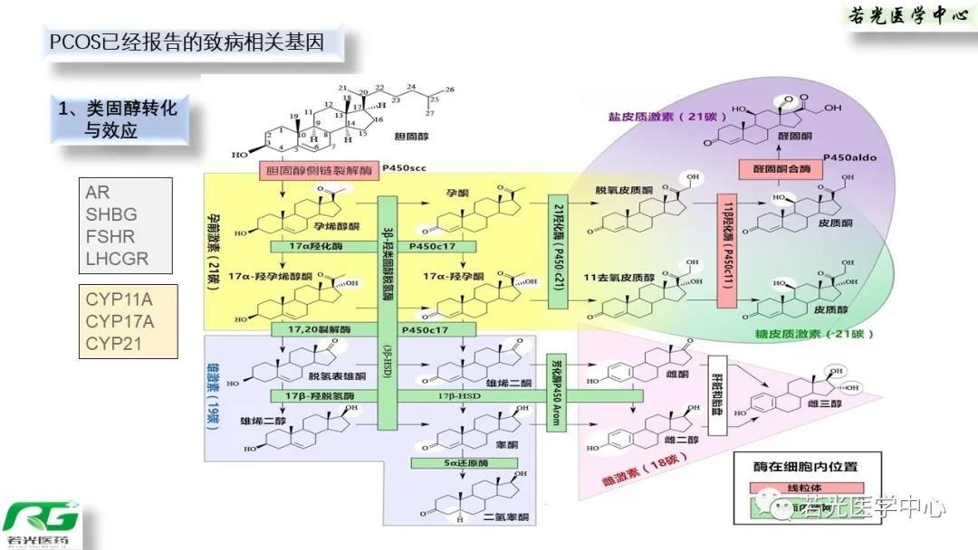 高雄的来源,必须清晰,肾上腺高雄必须鉴别。而PCOS高雄是来源于性腺的高雄。而性腺的高雄仍然与遗传学因素高度交织,涉及性腺发育,类固醇转化及效应(受体)变异。