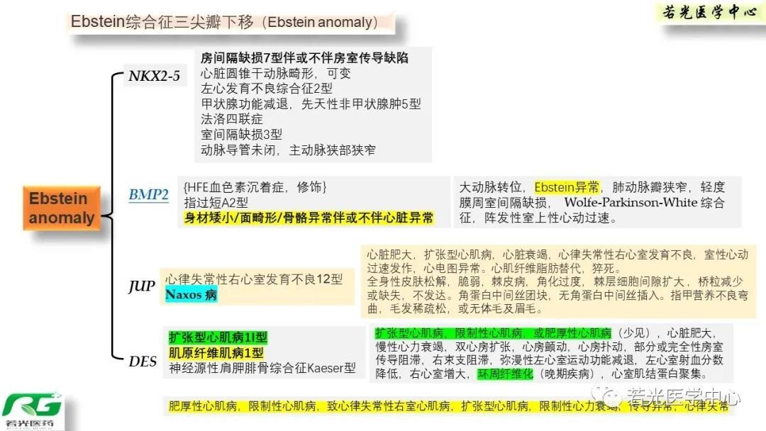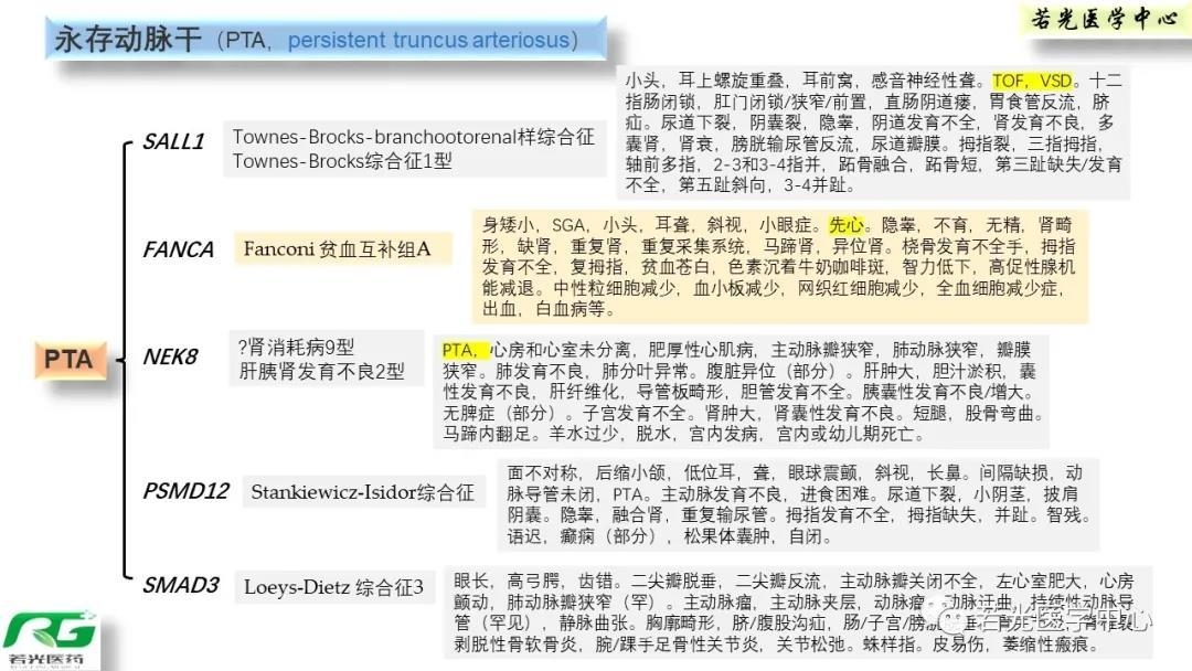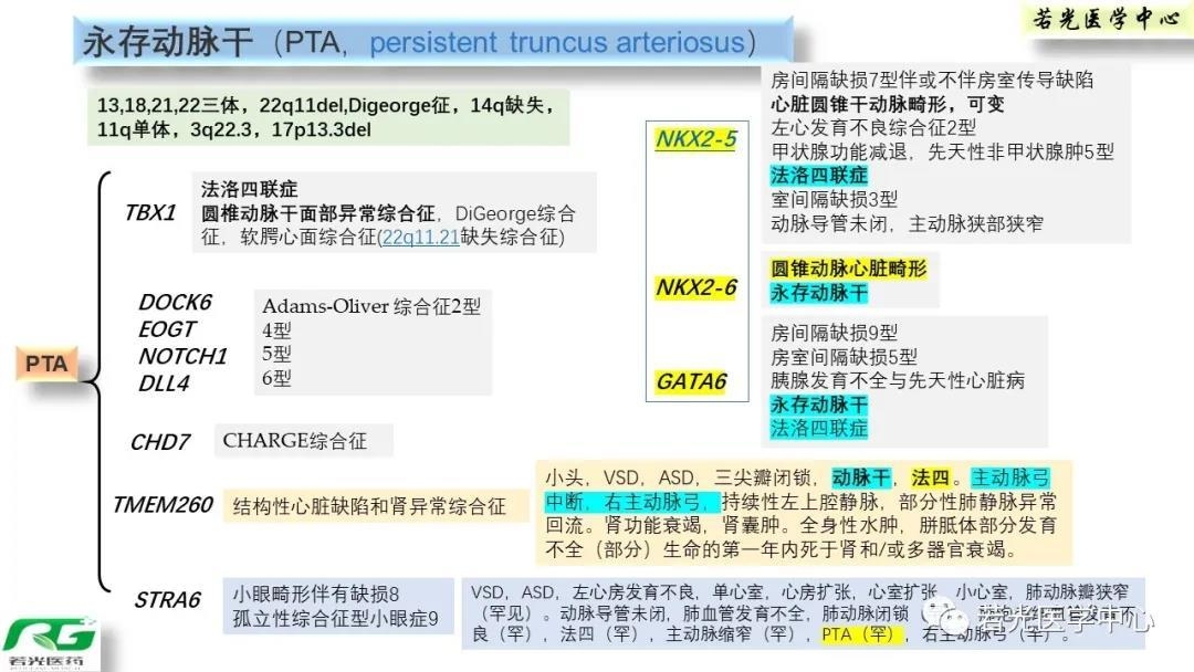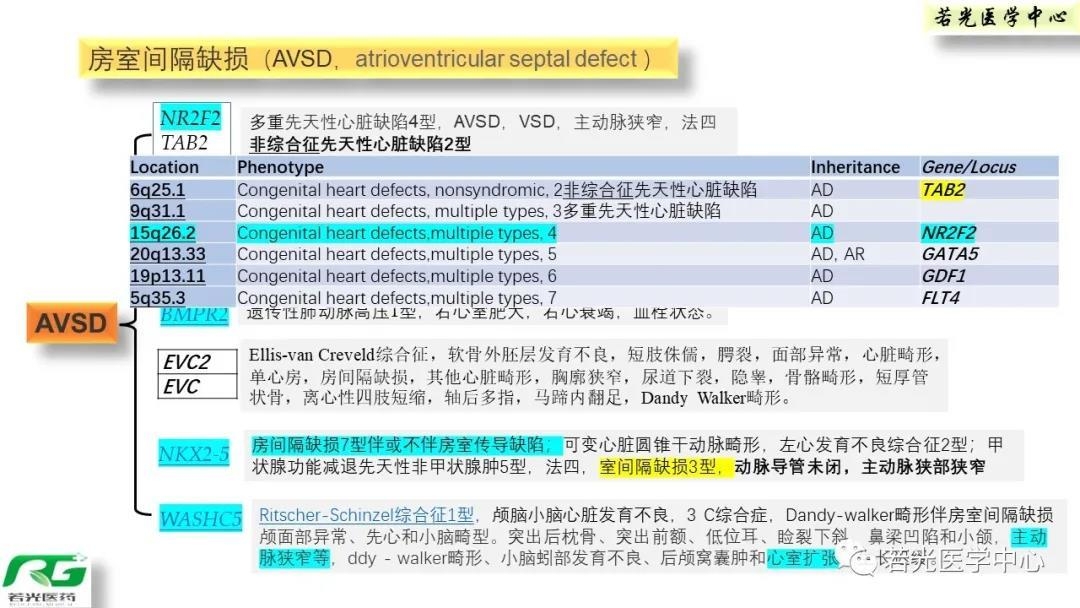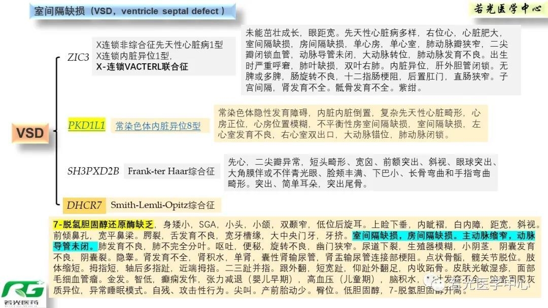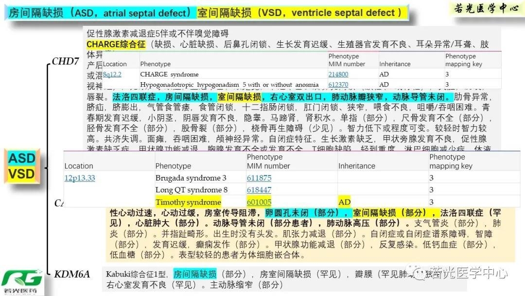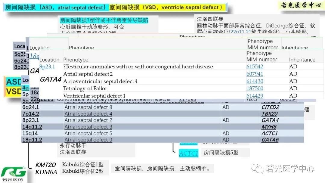先天性心脏病基因型-表型关联具有规律性和特征性,房间隔缺损、室间隔缺损,房室间隔缺损,三尖瓣下移Ebstein征,左心发育不良,肺动脉狭窄或闭锁,主动脉弓狭窄或闭锁,主动脉瓣狭窄或瓣膜病或主动脉瘤或夹层,大动脉转归,法乐氏四联征,右室双出口,永存动脉干,异构综合征,心脏肿瘤等,致病原因包括染色体异常如8,13,18,21,22三体,CNV层面如缺失如22q11.2缺失等,理化药物因素如TORCHS感染,沙利度胺等影响E3泛素联接酶相关转录因子和炎症因子表达等。单基因层面涉胶原基因,转录因子,结缔组织等发育相关等多层次多方面。详细进行归纳分析,基于表型树-疾病谱-基因网络进行分析时,可理清其规律性。