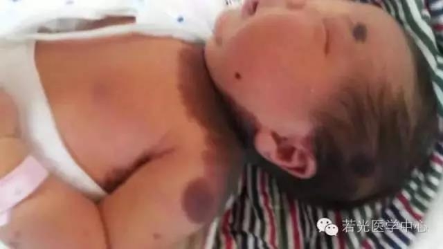 出生时即出现明显的皮肤黑色素沉着。中枢神经系统功能最初正常,但2岁以前即会出现癫痫发作和颅内压升高的症状,智力障碍可能始于1岁以前,这些症状与成黑色素细胞侵袭软脑膜-蛛网膜和脊髓压迫有关。40%~62%的患者出现软脑膜黑色素瘤,并伴有中枢神经系统的黑色素瘤。已经有调查表明,中枢神经系统机能紊乱常导致早期死亡。多数死于2岁以前,仅有10%活过了25岁。从最初发病到死亡一般间隔为0年(立即死亡)到21年,超过一半的患者死于最初诊断后的3年内。25% 的患者无神经系统症状,仅出现较大的先天性黑素细胞痣,可通过MRI检测出位于软脑膜或邻近脑实质的局部病灶。尽管这些患者的预后还不明确,但大部分5年随访病例未发现神经皮肤黑色素痣进展。患有“卫星”痣的患者发展成神经皮肤黑色素痣的危险性最大。在头部、颈部或后面正中线未出现痣的患者很少会出现神经系统的合并症。