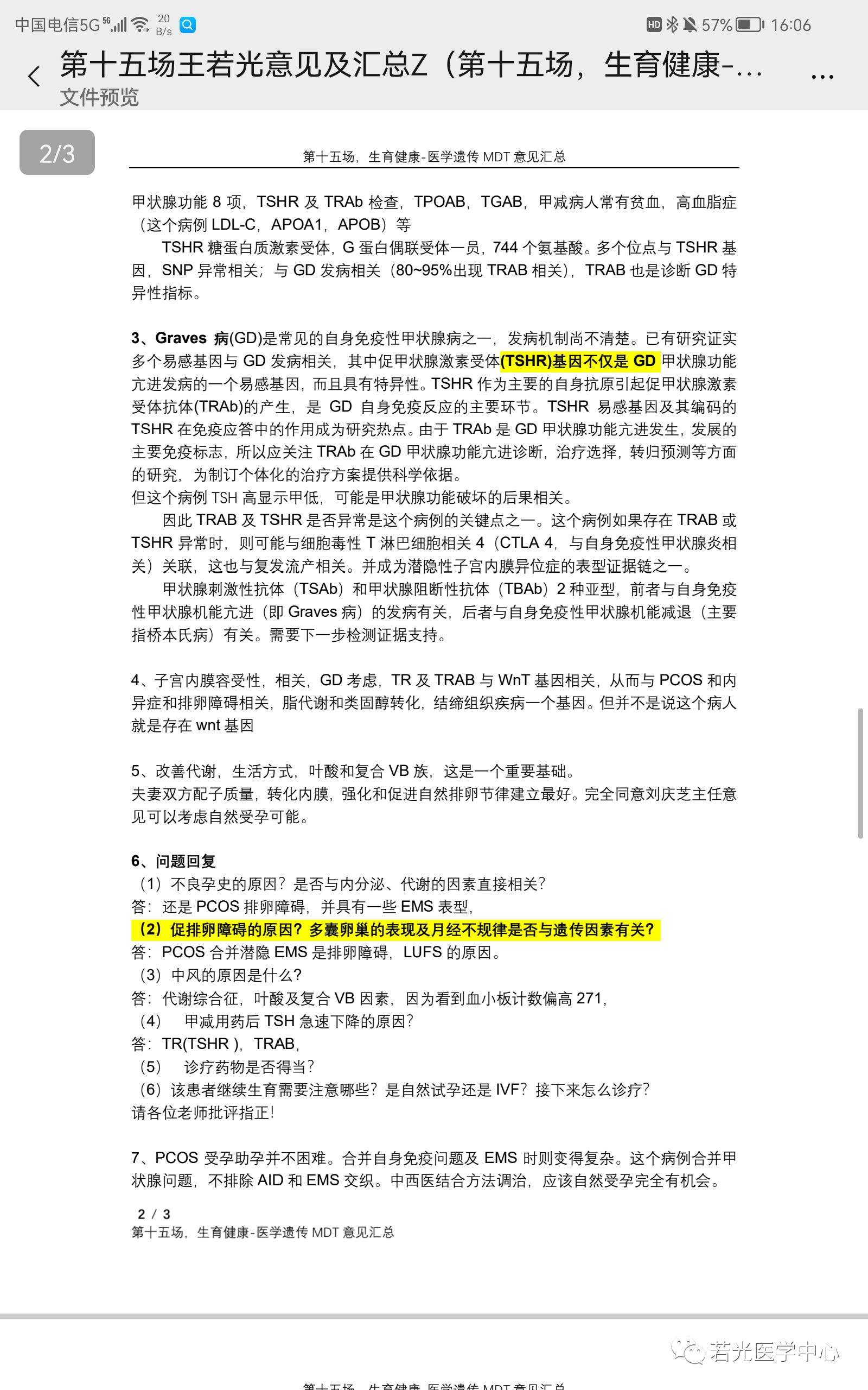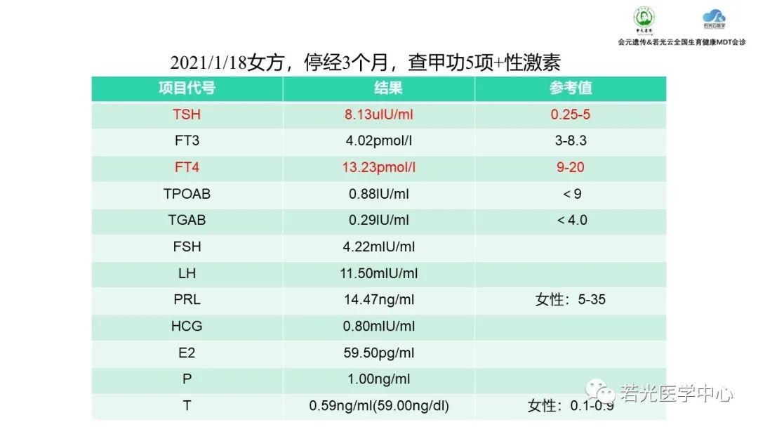 王秋威:生育健康-医学遗传第15期反馈(河南扶沟王秋威医生),患者检测甲状腺功能8项,TSHR水平显著异常增高。符合MDT讨论结论建议。符合子宫内膜异位症合并甲状腺炎。